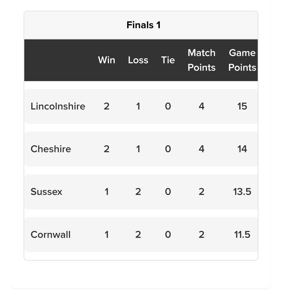 On a dramatic day where all four sides went into the day level on match points, Cheshire beat Cornwall 5.5-3.5, while Lincolnshire and Sussex battled out a nail-biter.